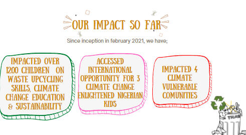 We are the first youth-led movement in Africa targeted at inclusion of children ages 5-15 in climate risk communities on fun upcycling - using waste materials, sustainable waste management & climate change education.